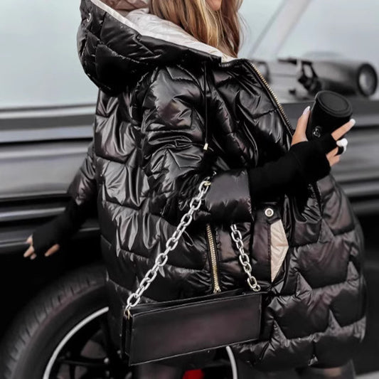 Womens Long Down Cotton Coat with Detachable Fur Collar
